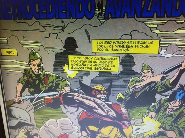 En la miniserie Sangre, Arena y Garras, publicada por Marvel en 1991, el mutante Logan acaba viajando al pasado, “aterrizando” en plena Guerra Civil. Lobezno presencia el bombardeo de Guernica, se alía con los republicanos de los republicanos enfrentándose al fascismo, e incluso entabla amistad con Ernest Hemingway. Sí, también salen toros.
