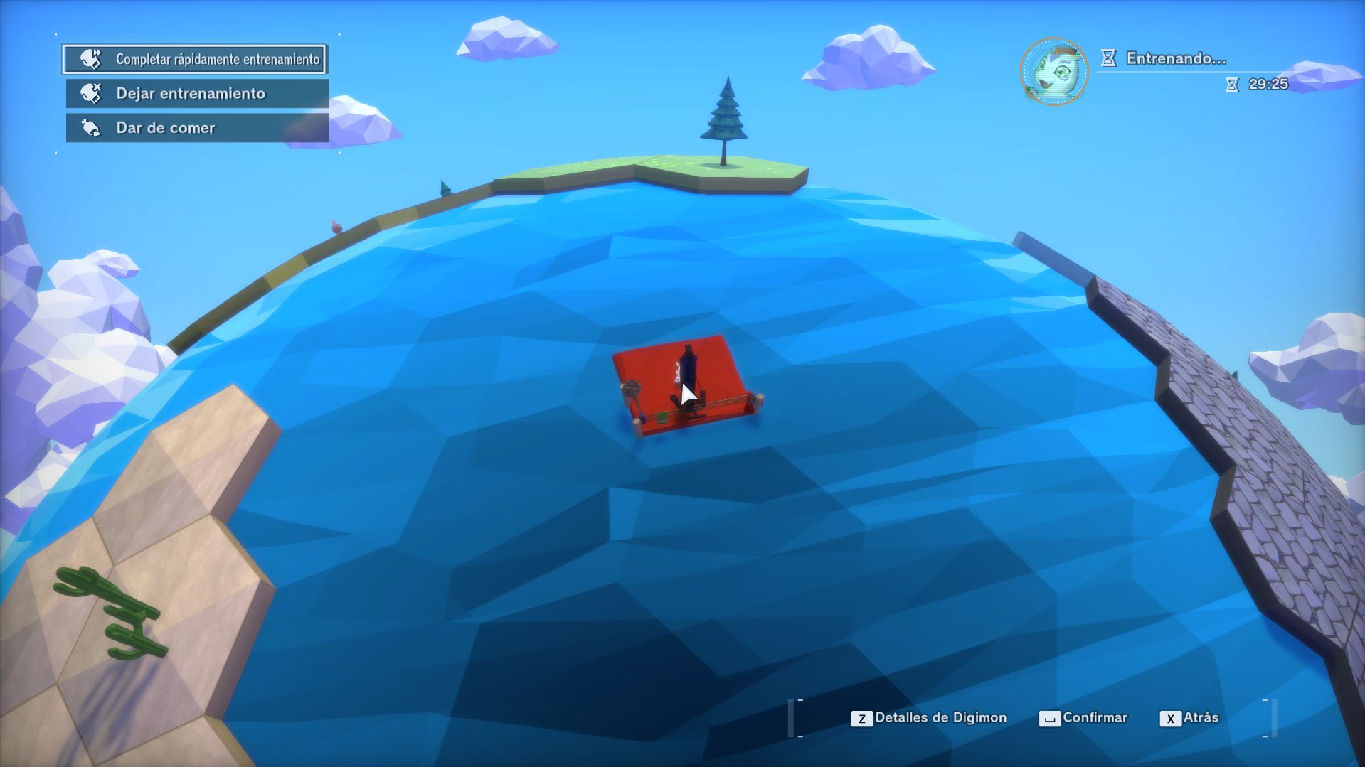 Este es el punto en el que quiero hablar de la granja de entrenamiento. Y es que entrenar a tus Digimon a base de batallas puede ser tedioso y además no aumentan un parámetro en concreto. La granja nos permite entrenar determinados aspectos de cada Digimon, potenciando lo que nos interesa en pos de una digievolución concreta. Pero tiene dos problemas: acceder a ella es complicado y controlar a nuestros Digimon acaba siendo un embrollo al tener que meter y sacar Digimons para ver sus stats.
