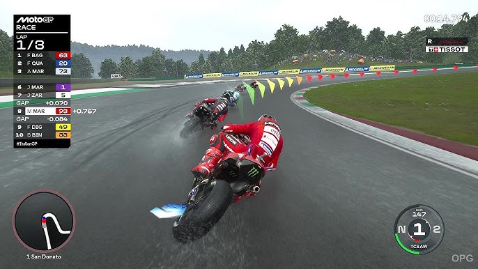 Si entras pasado en una curva y no gestionas bien el cuerpo del rider, la inercia te va a castigar. Es una sensación de control mucho más orgánica y humana. Aquí, la moto «está viva» y tú eres el que tiene que domar a la bestia moviendo el peso de un lado a otro. La gran novedad es el sistema de Valoraciones Dinámicas.