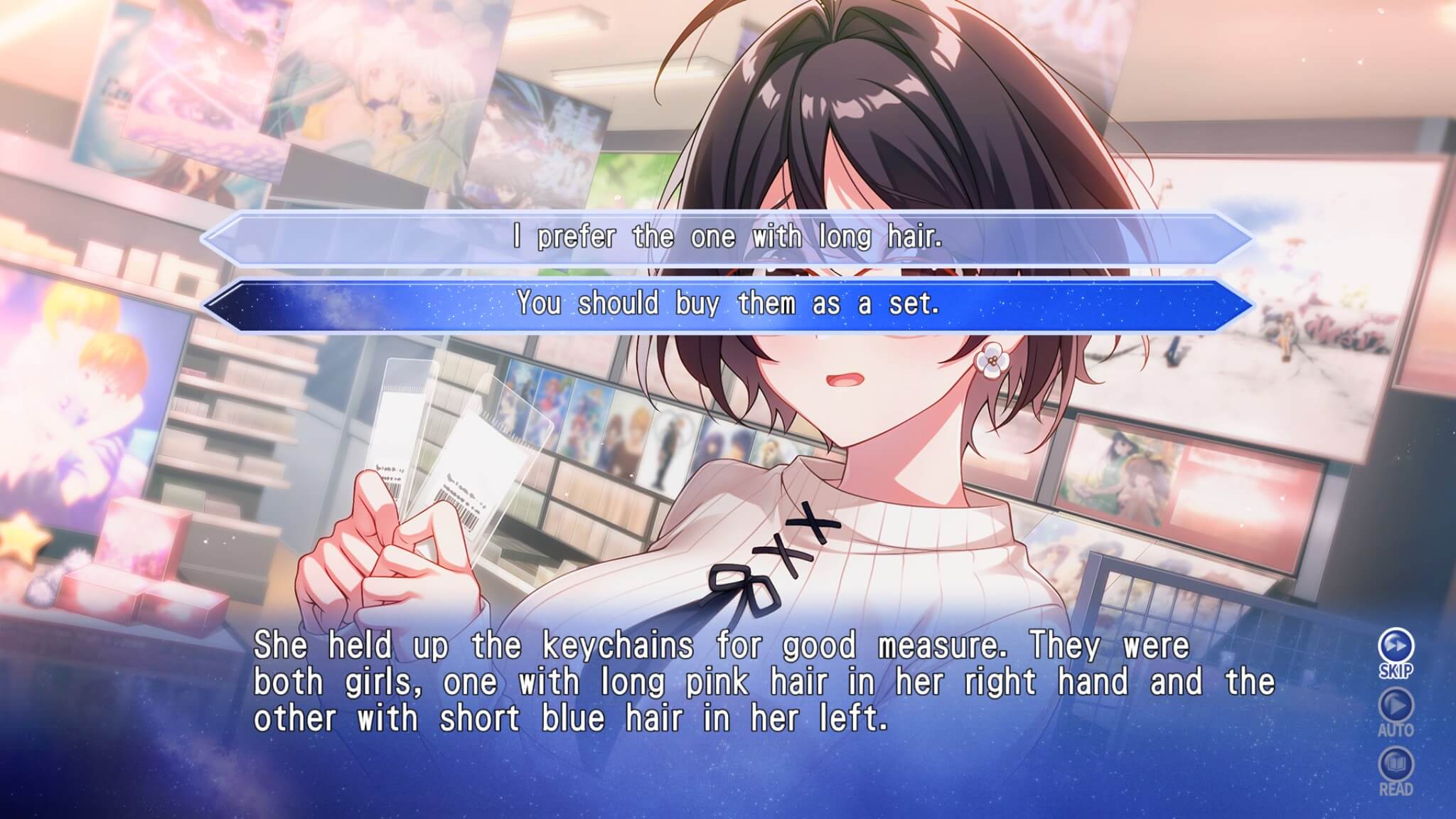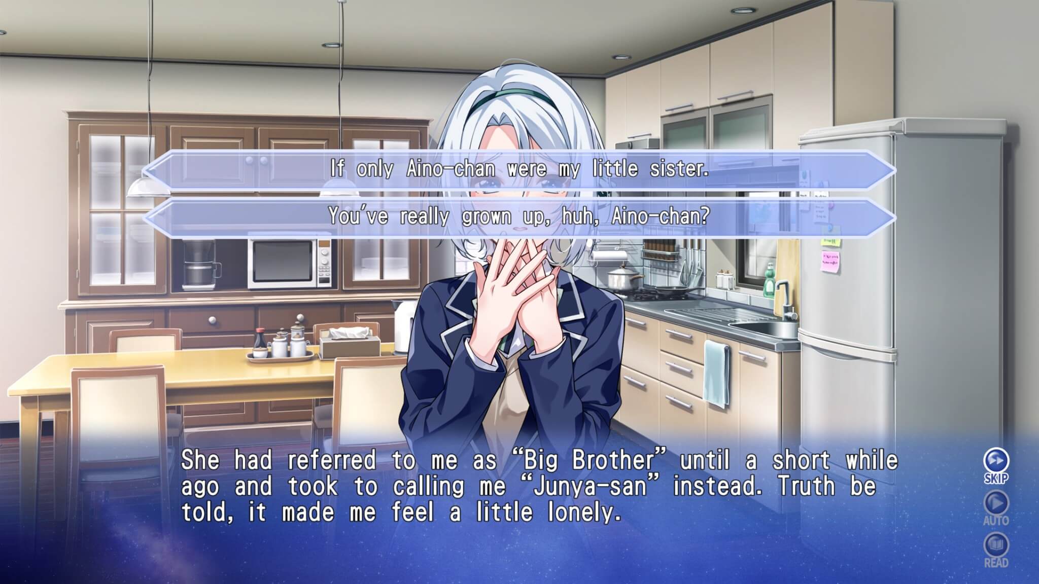 Si bien es cierto que la localización a veces falla, la escritura del guion es sólida. Especialmente por lo humana que se siente desde el primer momento. El trabajo de MAGES Inc. destaca por su humanidad. Con personajes que se sienten muy reales, se define por la tragedia y el amor a partes iguales. Desgarradora y esperanzadora al mismo tiempo, tiene mucho sentimiento. Sabe bien qué quiere expresar y lo consigue.