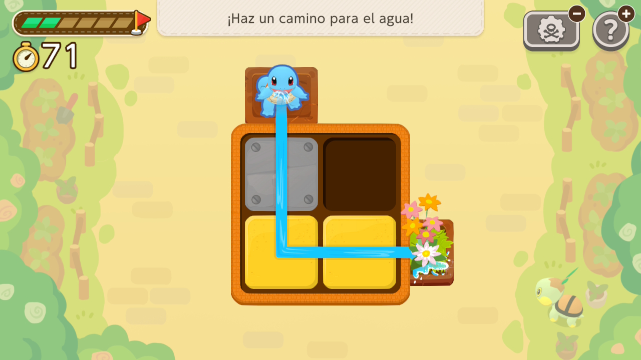Como punto positivo, nos ha gustado que la mayoría de los puzles cuentan con una temática inspirada en el mundo Pokémon. Por ejemplo, en una de las pruebas tenemos que ayudar a Bulbasaur a cruzar un río, mientras que otras tenemos que crear un recorrido eléctrico con Pikachu.