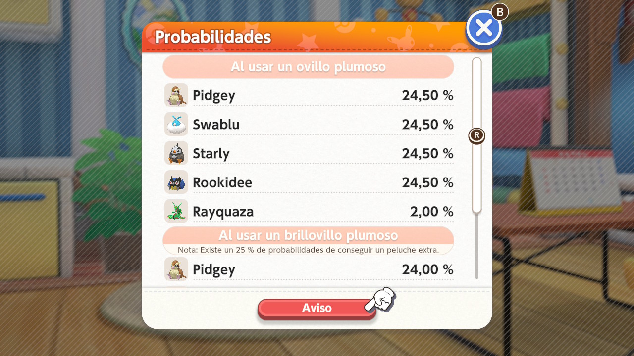Si conseguimos completarlas, obtendremos una maneja de hilo, cuyo tipo será aleatorio. Al insertarlo en el Peluchimátic nos creará un pokémon aleatorio de este tipo entre todos los que hay disponibles. Por ejemplo, con el ovillo chispeante podemos obtener desde un Pikachu hasta un Zeraora, ambos del mismo tipo. Sin embargo, los pokémon más extraordinarios tienen un ratio de obtención más bajo -el cual podemos consultar-.