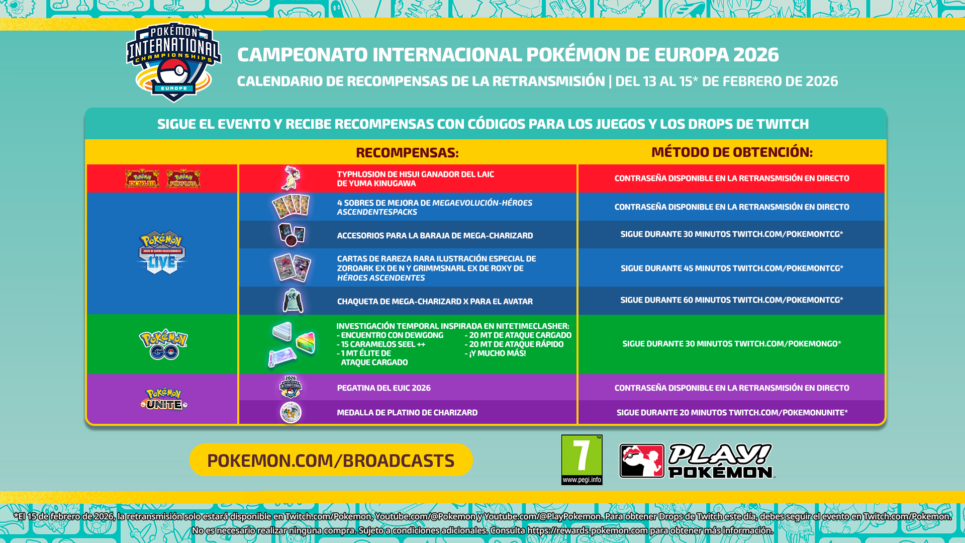 Recompensas y retransmisiones del EUIC Pokémon 2026