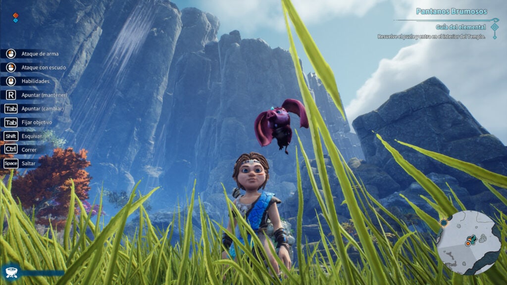 El mundo del juego se divide en regiones claramente diferenciadas, cada una representando un elemento. Visualmente, estas zonas tienen encanto: paisajes amplios, ruinas antiguas, estructuras flotantes y ecos de un pasado mítico que despiertan curiosidad. Explorar estos territorios puede resultar verdaderamente placentero, especialmente cuando el jugador se detiene a observar el paisaje o a descubrir pequeñas estructuras ocultas en el terreno.