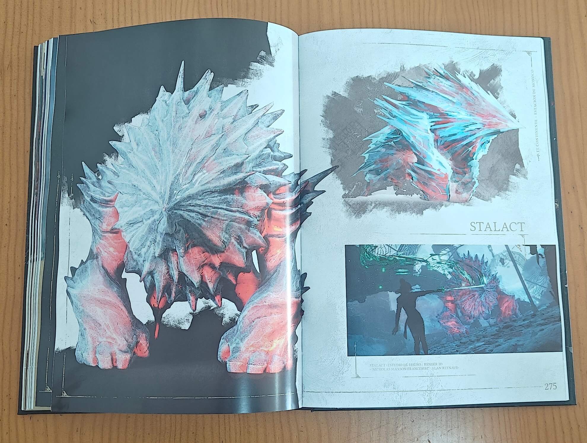 Son solo unos pocos ejemplos, pues son varios los creativos y artistas que participan en este libro. Por supuesto, incluye descripciones que profundizan en personajes como Monoco, al tiempo que se muestran los diseños de sus armas, artes conceptuales, ideas, etc.