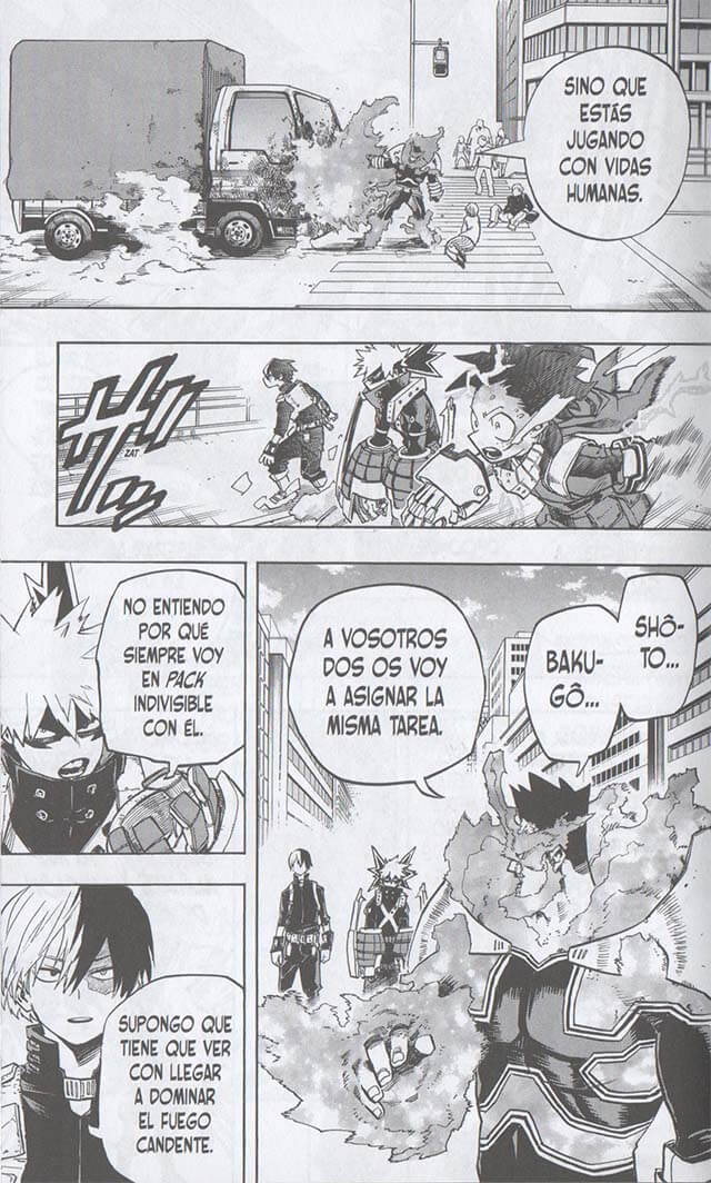 Por lo demás, My Hero Academia ha recuperado su buena ejecución argumental pasada. La narrativa vuelve a ser tan fluida como antes; la ausencia de acción no es aburrida, sino que aporta datos verdaderamente interesantes para la trama y los personajes. Véase, nuevamente, el caso de Endeavor, quien se abre al mundo a través de retazos de su pasado, diálogos y bocadillos de pensamiento. Para terminar, y como mero detalle anecdótico, el dibujo sigue siendo sobresaliente.