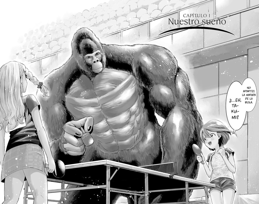 Kotomi y Takumi son dos gemelas que empiezan a jugar a ping-pong a la vez. Una, dotada de un talento natural; la otra, se cae hasta estando quieta. La pobre ha tenido que ponerle remedio para no quedarse atrás… Y se ha convertido en un gorila gigantesco. ¡Nace el milagroso vínculo entre un gorila y una chica!