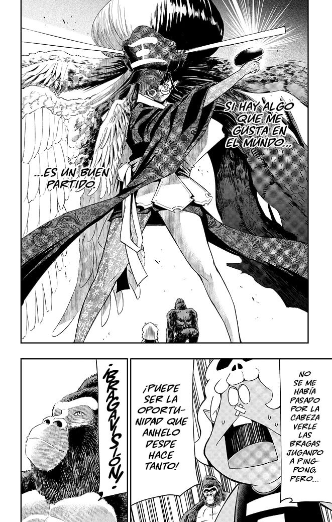 Seguramente, de no haber contado con una traducción tan notable, no me habría parecido “lógico” dentro de su rareza. Ya en el primer tomo alabé ampliamente el trabajo de Inma S. Andreu y Sageru, y en esta entrega no iba a ser diferente. Así pues, una de las grandes bazas de este Ping Kong es lo bien que se adecúa al español pese a que hay muchas bromas que no deberíamos ni entender.