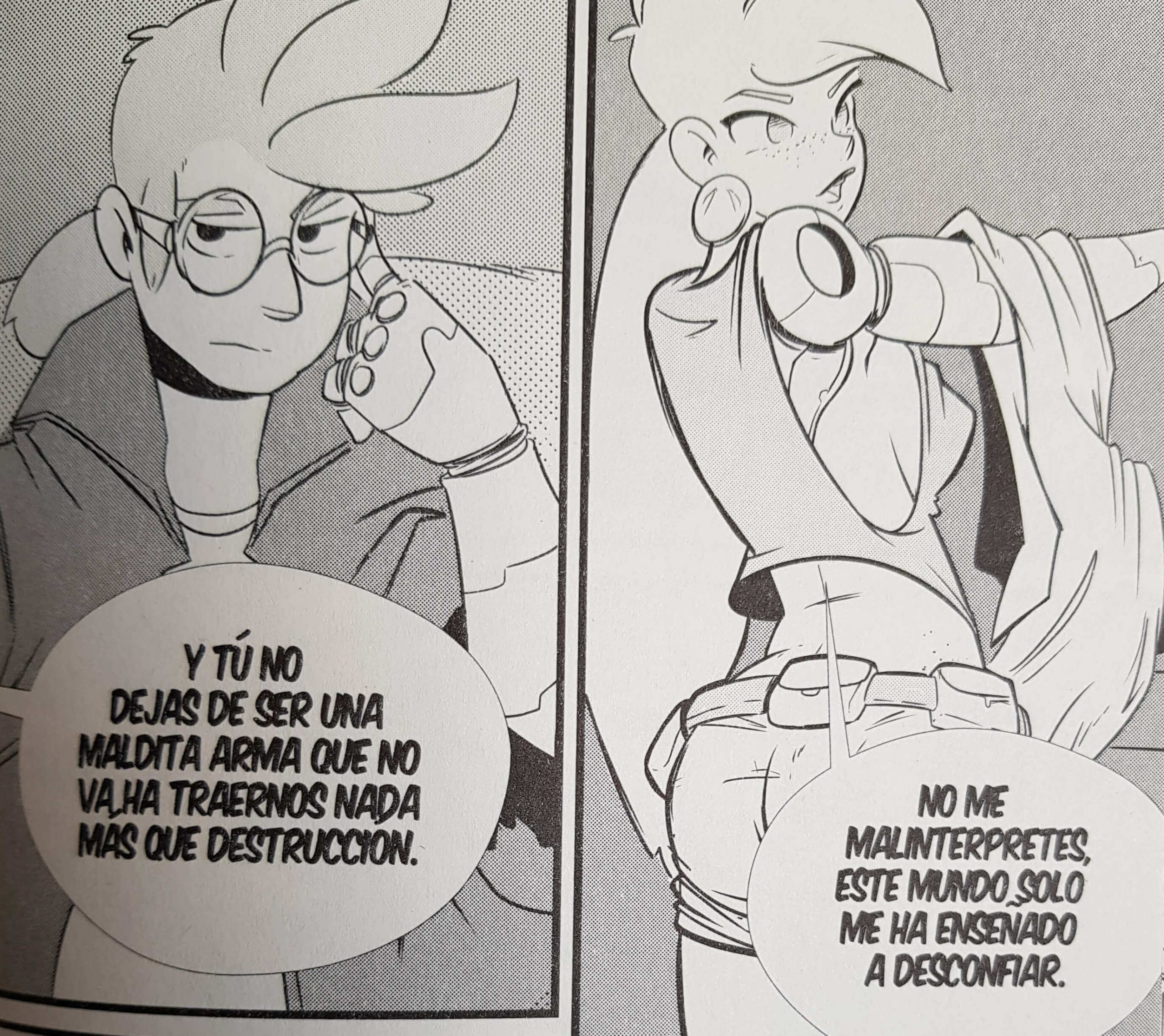 Por otro lado, he disfrutado mucho más de este segundo capítulo que del primero. Sigue teniendo tanta acción como el anterior, pero ya se va desarrollando más la historia y la relación de ambos personajes. En este segundo capítulo, tras ser liberado, Aron es considerado un miembro de la organización criminar F.I.R.E, y la misión de Aura es mantenerlo vigilado y esconderlo de la policía. Aún se desconoce mucha información sobre las intenciones de Aura y la supuesta organización Roch, pero siento que cada vez se irán revelando más cosas en cada entrega de la revista.