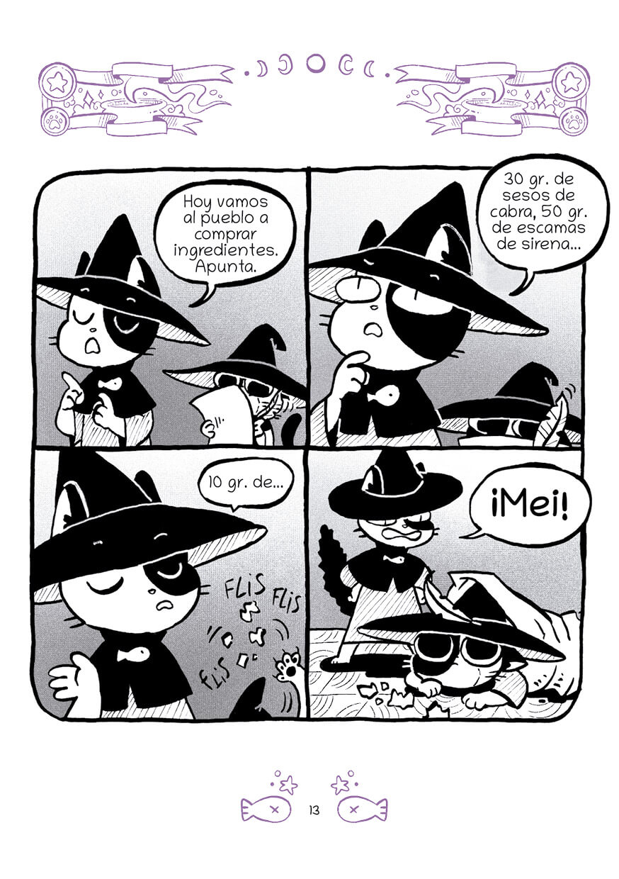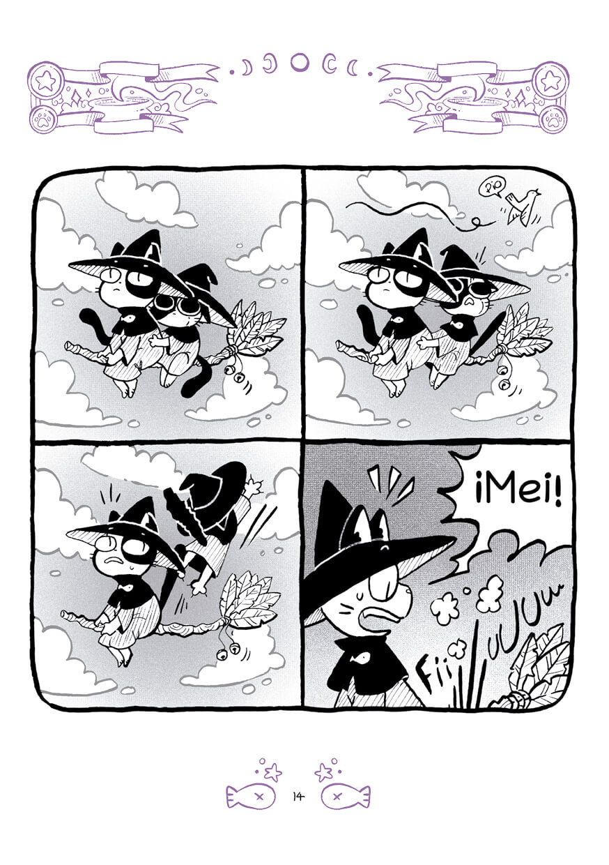 Así es. En Meigatas nos adentraremos en el día a día de dos simpáticas michis: Zoe, una maestra bruja, y Mei, su aprendiz. No obstante, debéis tener en cuenta que este no es un tebeo convencional en lo que respecta a su narrativa; es un compendio de historias cortas, por lo que es mucho más directo a lo que tal vez acostumbráis.