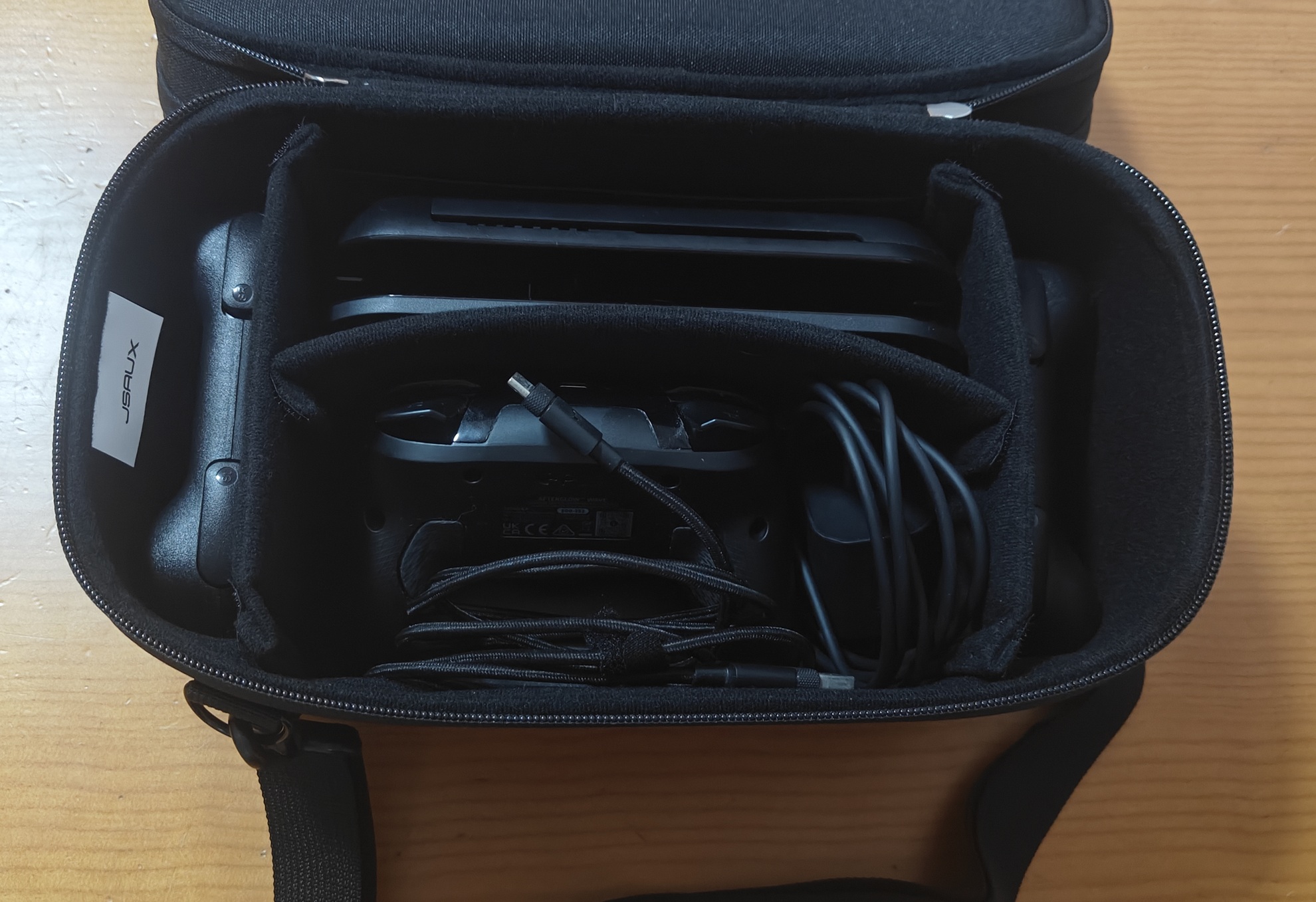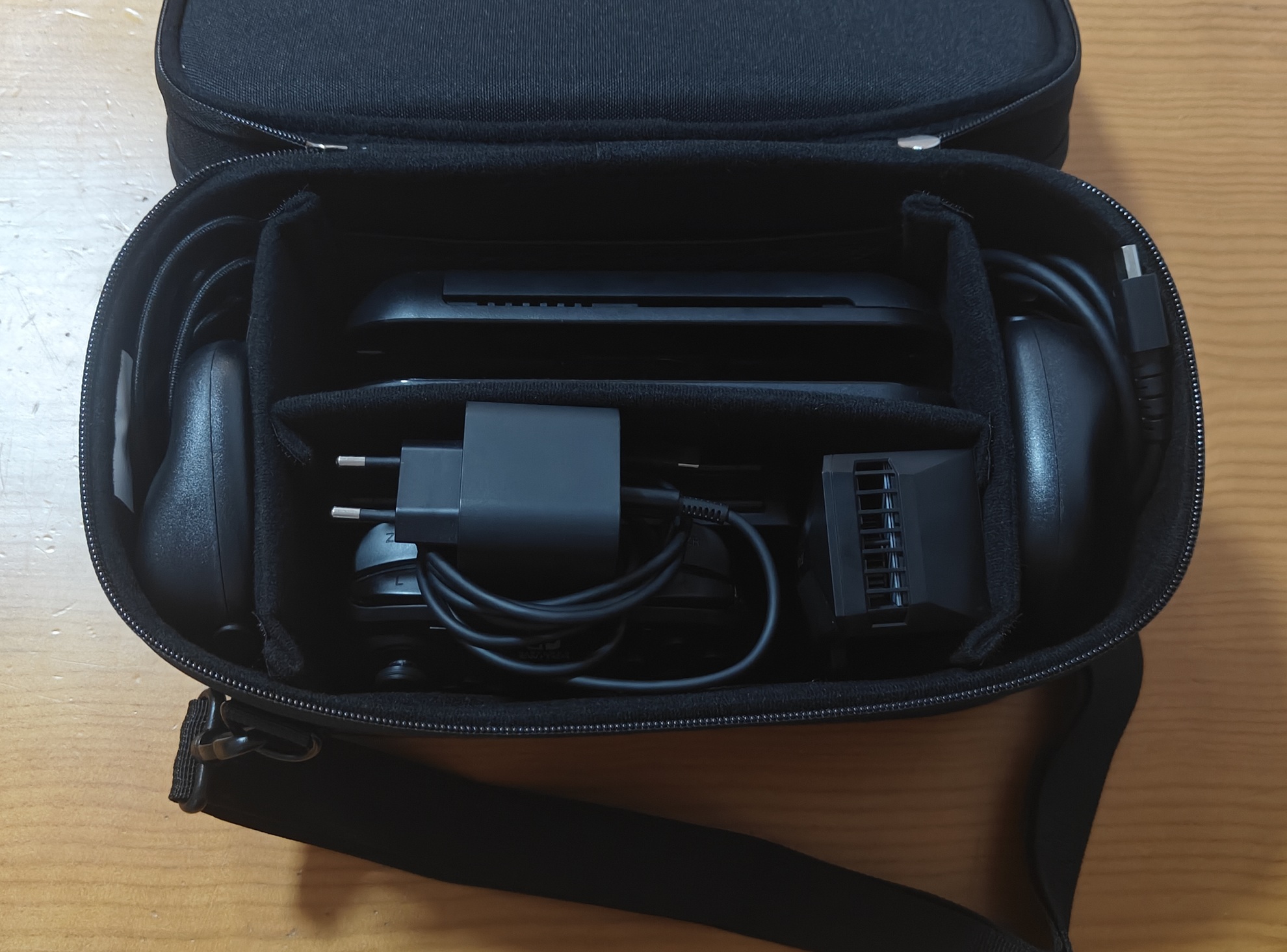 Dicho esto, lo que de verdad me ha terminado de enamorar es todo el espacio que trae. En las dos siguientes fotos os muestro cómo me quedo el interior de la maleta tras introducir prácticamente todos los accesorios y cables que suelo usar con la NSW2.