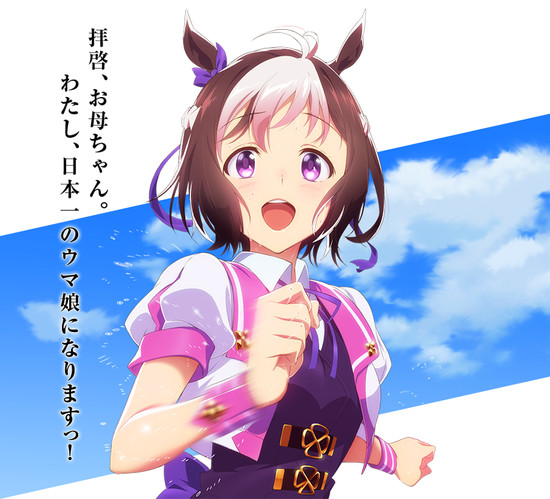 La página oficial del anime Uma Musume Pretty Derby revela la imagen promocional del proyecto y el reparto principal este sábado. El texto de la imagen es: